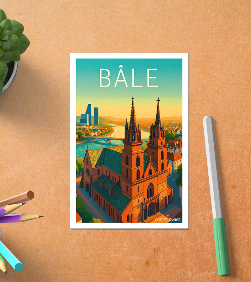 - Papier premium 350 g/m² pour une carte postale Bâle vintage durable