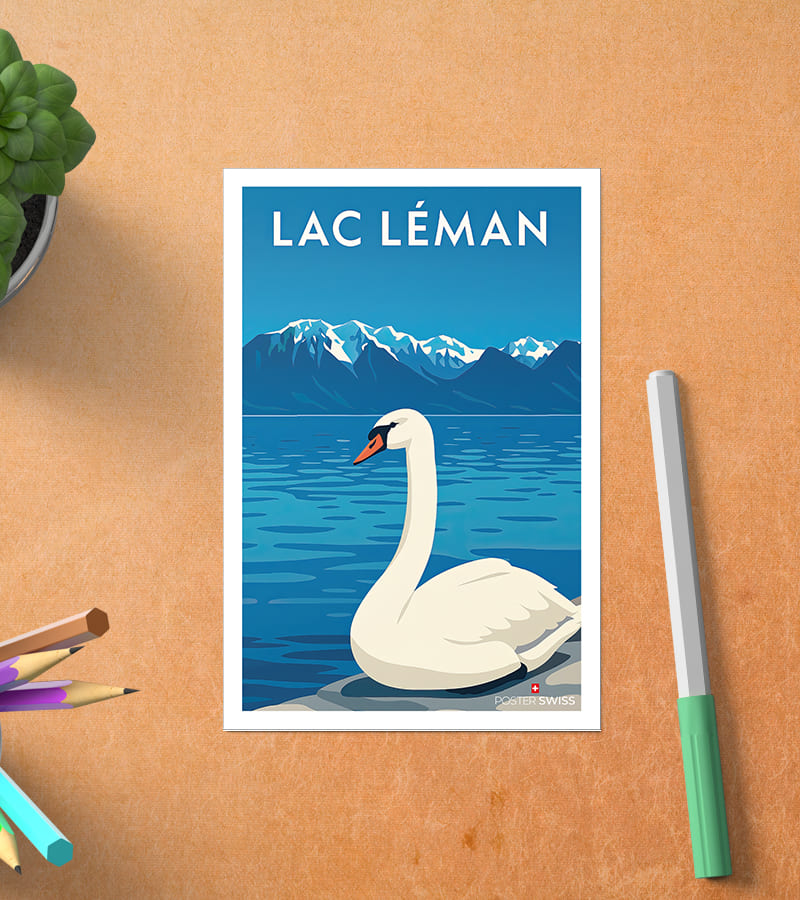 Une carte postale Cygne Lac Léman au style raffiné et lumineux