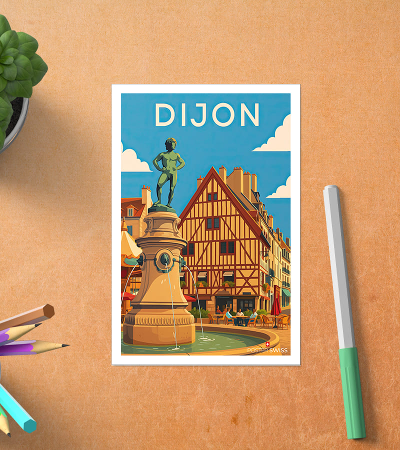 Découvrez le riche patrimoine historique et culturel de Dijon avec cette splendide carte postale Dijon. Entre ses maisons à colombages, ses églises gothiques et la célèbre moutarde qui a fait sa renommée, Dijon séduit par son charme authentique. Cette carte postale Dijon capture l’essence d’une ville où histoire et art de vivre se rencontrent harmonieusement.