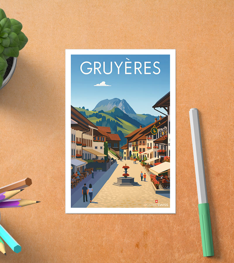- Impression haute qualité pour une carte postale Gruyère éclatante